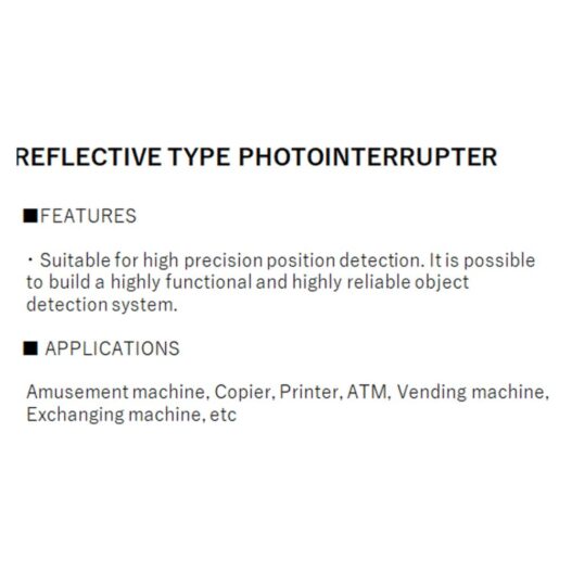 BY : AUECategory Electronic Products Keyword sensor elements Features A photointerrupter is an optical sensor that consists of a light-emitting part and a light-receiving part, which measure changes in light intensity caused by the interruption or reflection of light paths by an object. It can detect the presence, position, and movement of an object. Summary There are various types, such as ③separated photointerrupter with separated light-emitting and light-receiving parts and ④actuator-type photointerrupter, which detects by blocking the light path between the light-emitting and light-receiving parts with a built-in lever. We offer a variety of lineup options for reflective-type photointerrupters, including detection distance, mounting, and size, as shown in the table below. In addition, we can also provide flexible customizations such as creating prototype products according to customer requirements or accommodating customizations such as attaching lead wires or connectors when mounting photointerrupters on boards. Applications Amusement Machine,Copier,Printer,ATM,Vending Machine,Exchanging Machine etc. Place of Origin South Korea HS Code